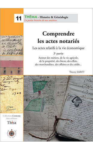 Réf.: 11Après deux Théma consacrés aux actes notariés relatifs à la personne ou à la famille (cf. les Théma 7 & 8), un troisième fascicule s’imposait pour présenter l’ensemble des actes notariés relatifs à la vie économique de nos ancêtres.