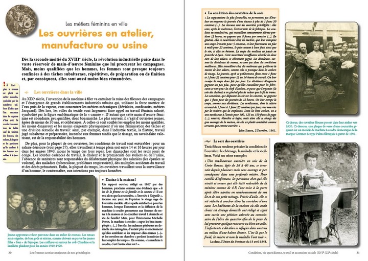 Ainsi, malgré des traces ténues dans les documents d’archives (mais si on veut bien les chercher, on finit par les trouver), l’implication des femmes, qu’elles soient célibataires, mariées ou veuves, se vérifie dans tous les lieux d’activité : dans les maisons, dans les fermes, dans les rues, sur les marchés, dans les boutiques, dans les ateliers, dans les manufactures, dans les usines et dans les administrations…