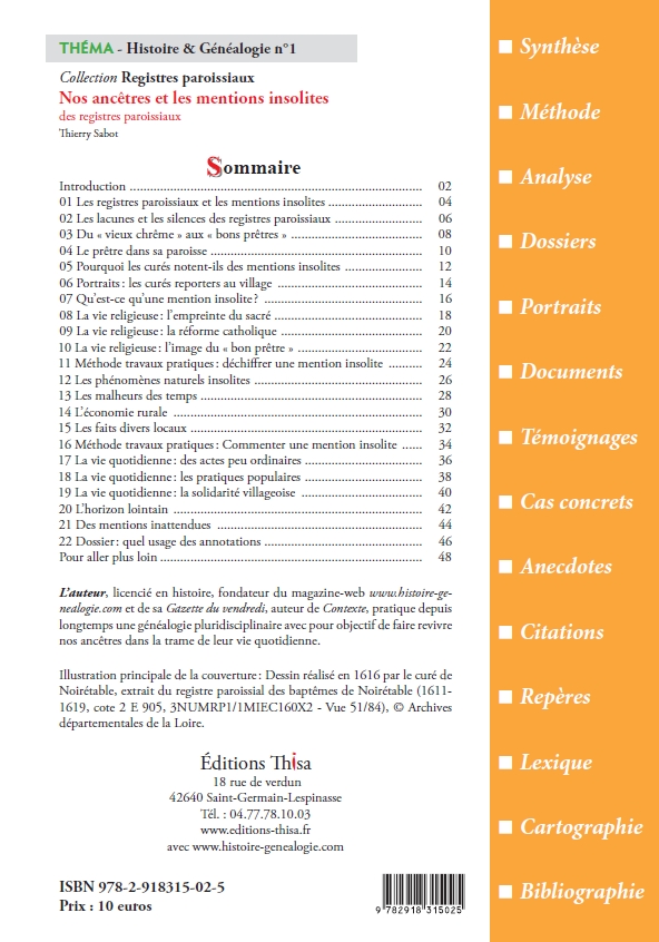 Réf.: 01Pourquoi certains curés notent-ils des mentions insolites ? Que nous apprennent-elles sur la vie quotidienne de nos ancêtres ? Comment les utiliser pour compléter notre généalogie et l'histoire de notre famille ? Une étude inédite...